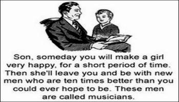 "Hijo, algún día harás muy feliz a una chica, por un corto período de tiempo. Luego ella te dejará y estará con otros hombres, los cuales son diez veces mejores que lo que tu jamas podrías esperar ser. Estos hombres se llaman músicos."