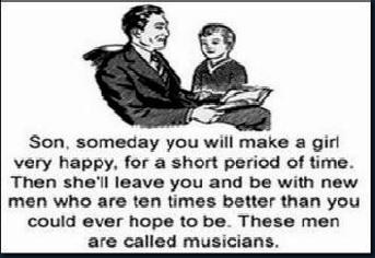 "Hijo, algún día harás muy feliz a una chica, por un corto período de tiempo. Luego ella te dejará y estará con otros hombres, los cuales son diez veces mejores que lo que tu jamas podrías esperar ser. Estos hombres se llaman músicos."